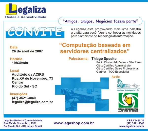 Pessoal, amanhã tem evento da Legaliza na ACIRS. Vamos prestigiar.