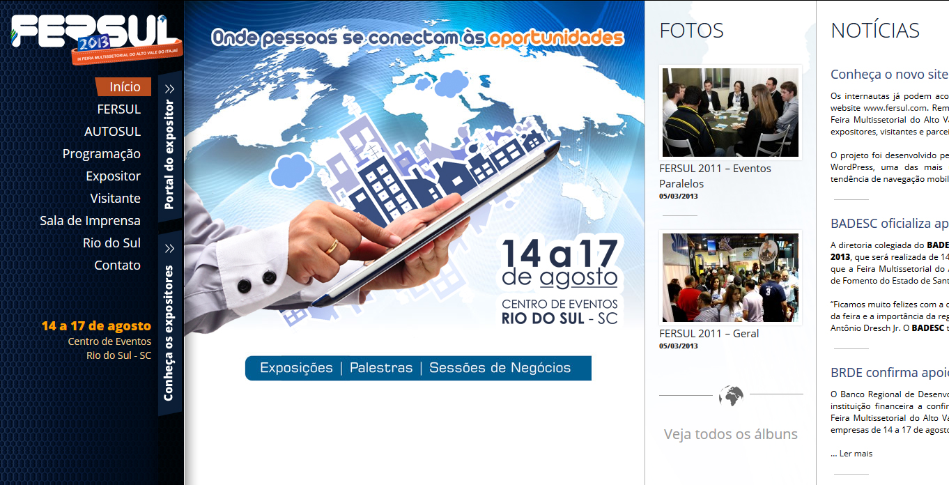 Os internautas já podem acompanhar as novidades da FERSUL 2013 pelo website www.fersul.com Remodelado e muito mais eficiente, o portal da IX Feira Multissetorial do Alto Vale do Itajaí permite a completa interação de expositores, visitantes e parceiros com o evento.