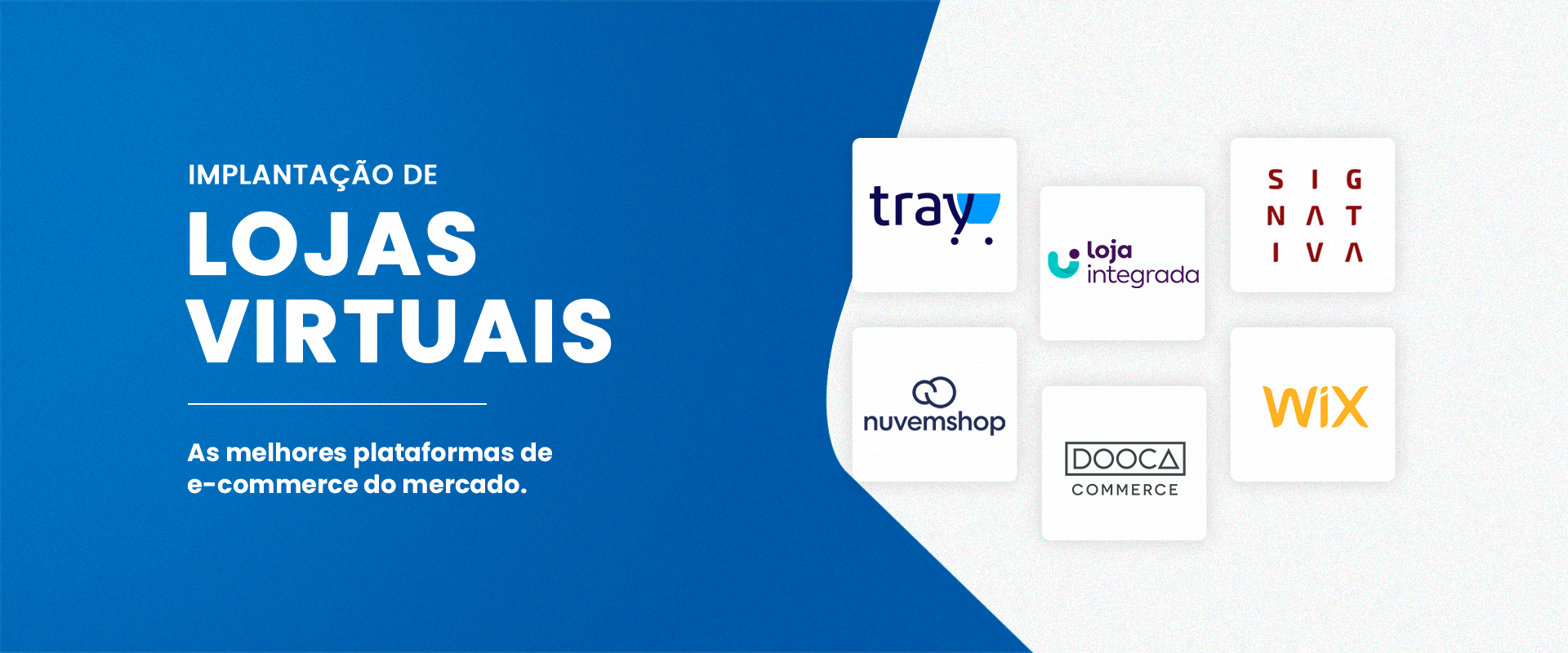 Implementação e criação de e-commerce, para vendas on-line nas plataformas de mercado: Tray, Wake, .Jet NEO, WooCommerce (WordPress), WebCommerce, NuvemShop, Wix Store, Shopify, Loja Integrada e Dooca Commerce. Integração com gatways/integradores de pagamento e frete.